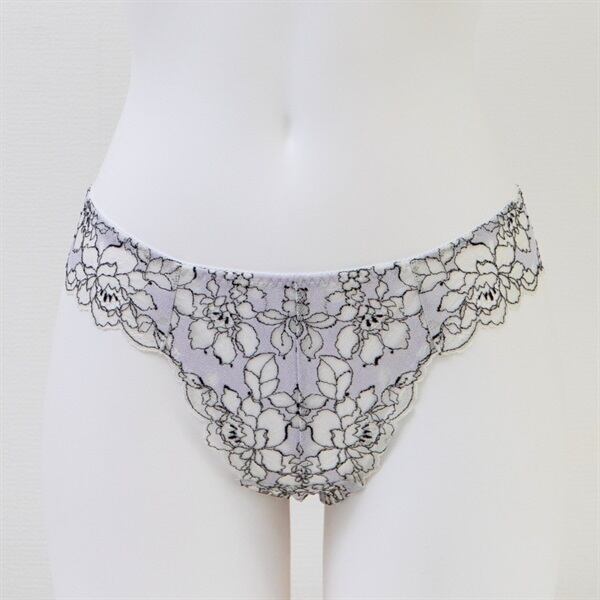 スリムなスカートやパンツに合わせるブラジリアンショーツ。裏地の肌馴染みがよく、まるで素肌のように見えるため、とてもセクシーなショーツです。